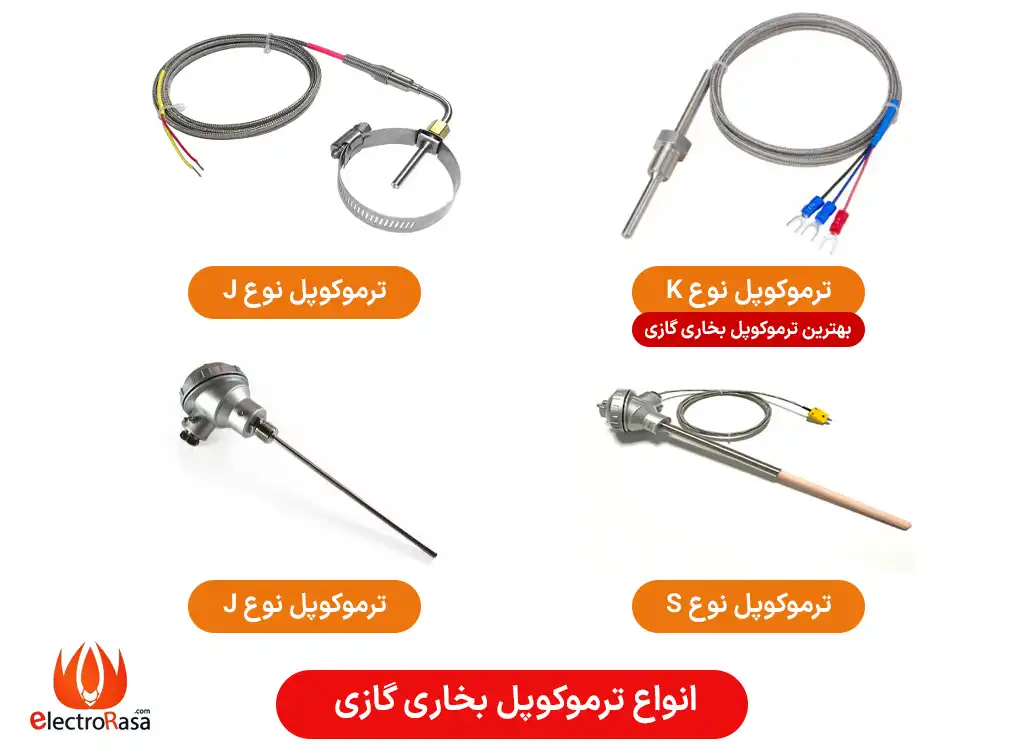 ترموکوپل ابزاری است که یکی از کاربرد های آن، اندازه گیری دما در بخاری های گازی است. مهم ترین فاکتور در انتخاب بهترین ترموکوپل بخاری گازی، دمای مورد نیاز و نوع بخاری است. ترموکوپل به کار رفته در بخاری گازی انواع مختلفی دارد که در ادامه مطلب آن ها را معرفی می کنیم.